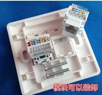 网络模块那又是什么呢?我相信每个人家里都有,但是就是没有自己动手装过,这个还是跟我们息息相关的。每个模块上都会有提示A/B类线的颜色对应排序方法,将线依次卡进去就行了,另外一端只需要做一个B类的水晶头插在交换机上就行了。